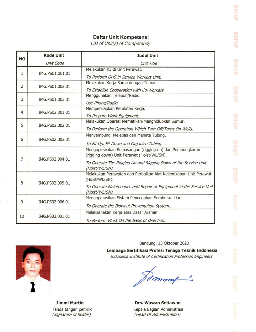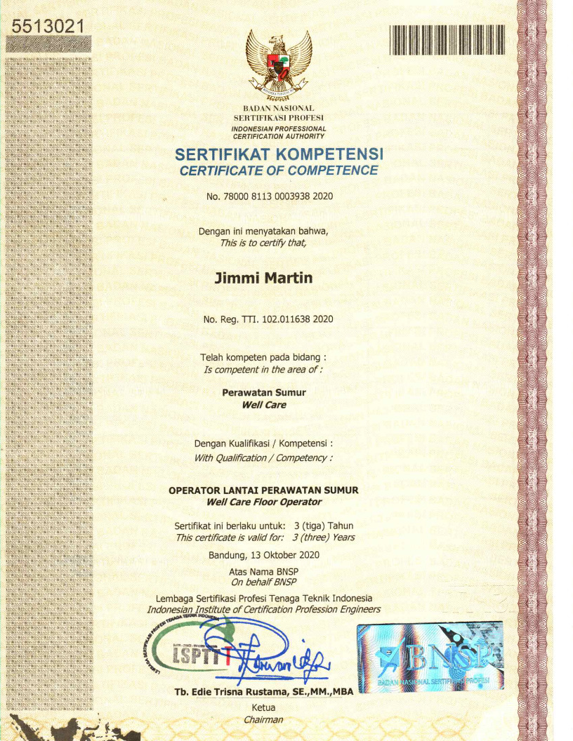| Skema Sertifikasi | : | OPERATOR LANTAI PERAWATAN SUMUR |
