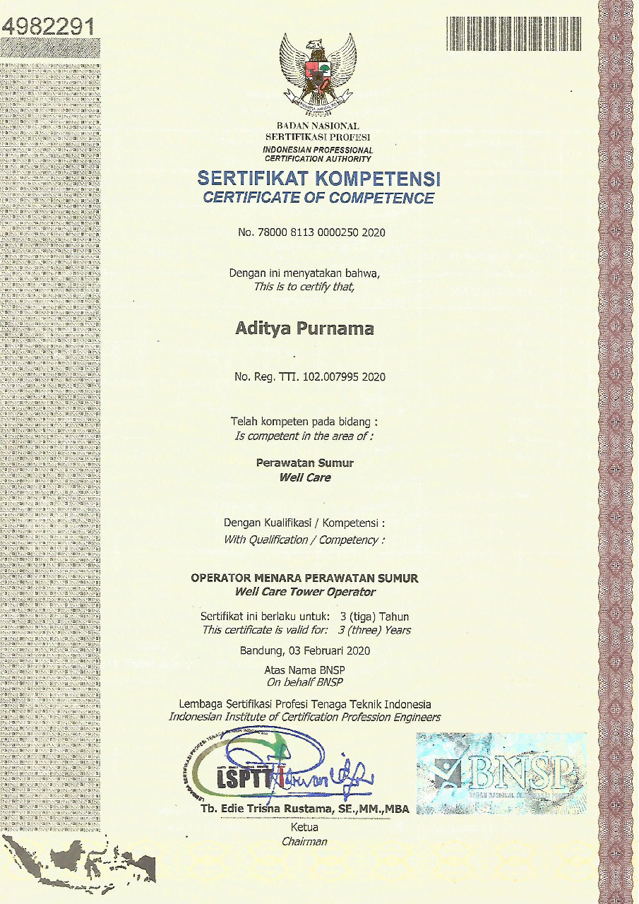 | Skema Sertifikasi | : | Skema Sertifikasi Okupasi Operator Menara Perawatan Sumur |