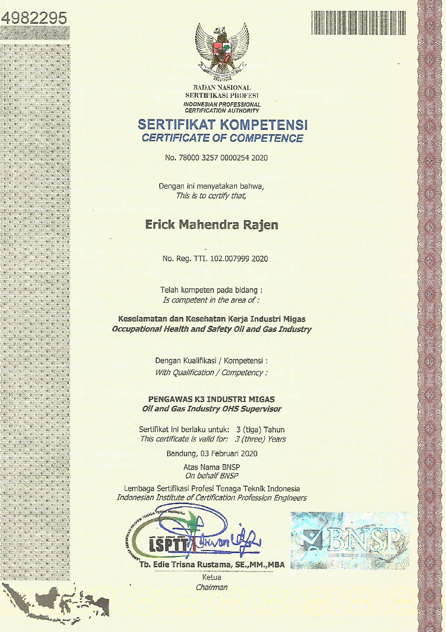 | Skema Sertifikasi | : | Skema Sertifikasi Okupasi Pengawas K3 Industri Migas |