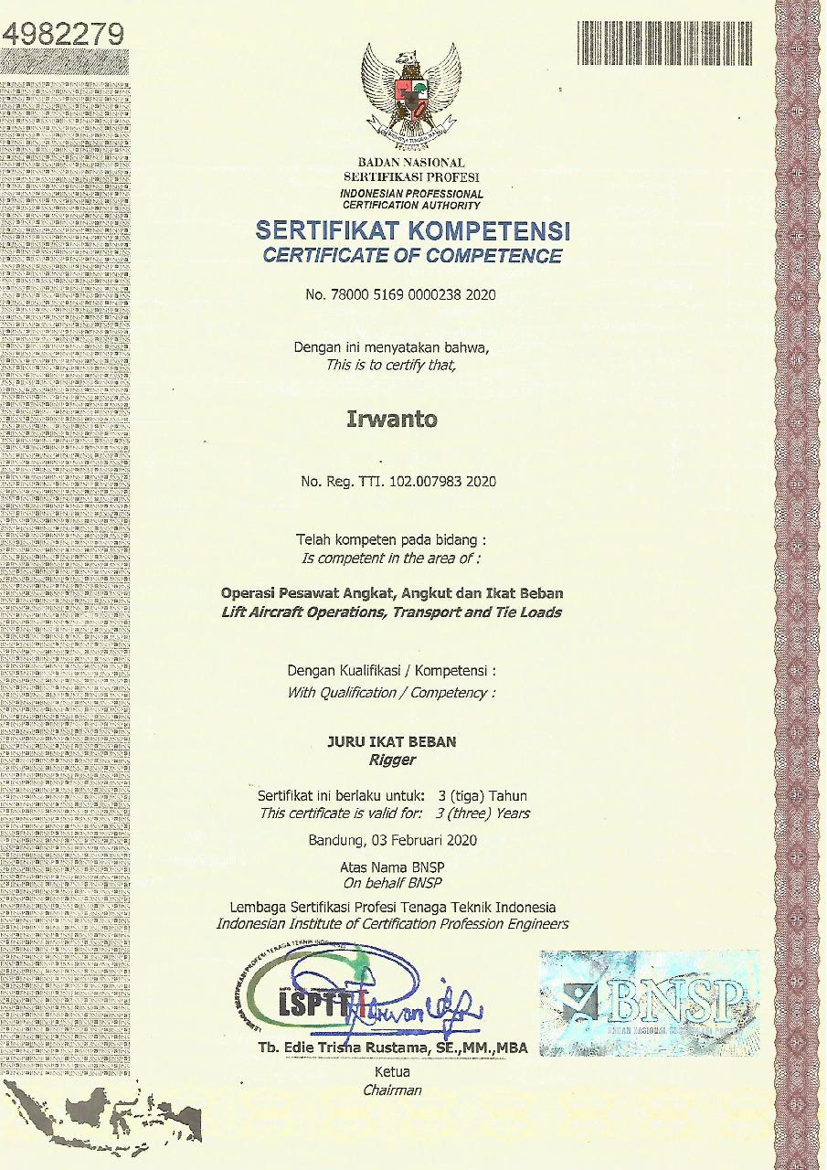 | Skema Sertifikasi | : | Juru ikat beban / RIGGER |